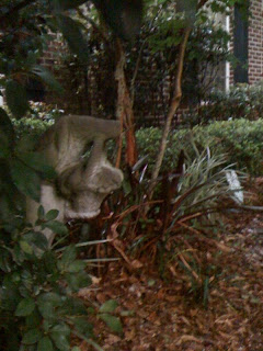 an uneventful day as i was trying to rest for a bit of driving tomorrow-taking a 4-ish hour drive to a shopping day and then headed back that night-but, the day gave me an exciting turn and rained...a good and needed soaking. not too long, just right. the pups and i went out to investigate afterwards and found one of my favorite shady spots with my handy iphone. it looked so refreshing, the top of our cement dog, faithfully holding my basket of cement flowers, a darker shade due to the rain, under the branches of my baby crepe myrtle, with a teeny bit of caladium peeking through. just thought it was a lovely image for today's entry into the world of creativity, and seeing my world through different eyes...